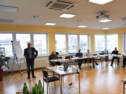 Das Trainingsseminar widmete sich den Fassaden im Wohnbau. Die 14 TeilnehmerInnen wurden über die Auswahl geeigneter Materialien, die richtige Dämmung und Ausführung, Dampfbremsen, konstruktiver Schutz der Fassade, Putze und Farben sowie Reinigung und Sanierung informiert.