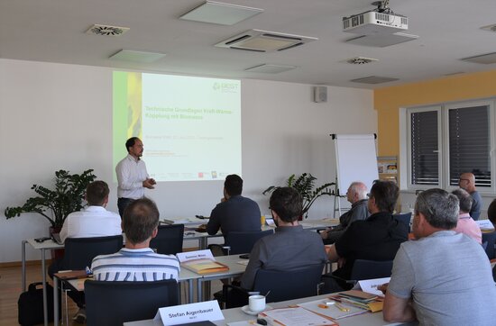 Das Kurz-Trainingsseminar vermittelte den 23 TeilnehmerInnen die Grundlagen der Biomasse KWK-Technologie im kleinen Leistungsbereich und gab einen Überblick über Innovationen aus Oberösterreich. Verschiedene KWK-Technologien wurden vorgestellt und anhand von Berechnungsbeispielen erklärt. Praktische Erfahrungen mit der Umsetzung von KWK-Anlagen ergänzten das Programm.