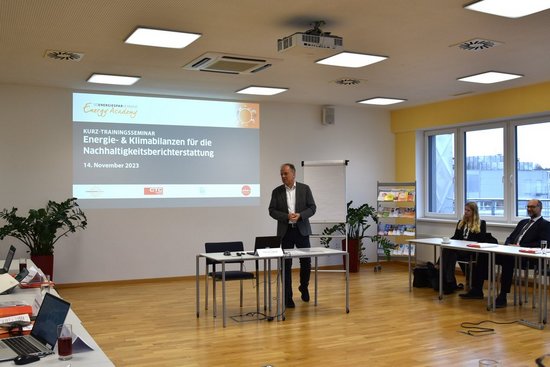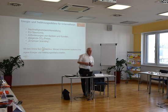Das Trainingsseminar informierte 20 TeilnehmerInnen über die Erstellung von Energie- und Klimabilanzen und die Möglichkeiten, daraus Maßnahmen zur CO2-Reduktion abzuleiten, um im Unternehmen auf dem Weg zur Klimaneutralität voranzukommen. Die TeilnehmerInnen erwarben das Know-how zur Erstellung einer Energie- und Klimabilanz für das eigene Unternehmen und erarbeiteten mit Hilfe eines neuen Online-Tools eine individuelle Test-Bilanz. Diese umfasste Scope 1 (direkte Emissionen), Scope 2 (indirekte Emissionen aus eingekaufter Energie) und Scope 3 (indirekte Emissionen entlang der Wertschöpfungskette des Unternehmens).