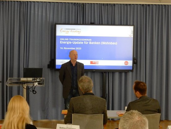 Das Kurz-Trainingsseminar richtete sich an MitarbeiterInnen von Banken, die sich einen Überblick über aktuelle Entwicklungen und Förderungen rund um das Energiethema im Einfamilienhausbereich verschaffen wollen. Es bot den 40 TeilnehmerInnen ein Förder-Update, Informationen zu Technologietrends rund ums Bauen und Heizen, wie z.B. Photovoltaik, Stromspeicher und E-Mobilität.