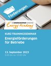 Das Kurz-Trainingsseminar gab Unternehmen, die sich für Investitionen in Energieeffizienz und erneuerbare Energie interessieren, einen guten Überblick über verschiedene Fördermöglichkeiten und zeigte den 12 TeilnehmerInnen, worauf es bei einer erfolgreichen Antragstellung und Projektumsetzung ankommt.