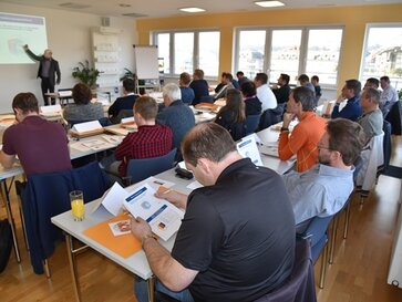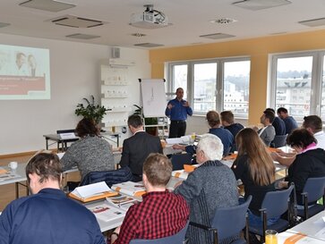 Das Trainingsseminar widmete sich den Fassaden im Wohnbau. Die 24 TeilnehmerInnen wurden über die Auswahl geeigneter Materialien, die richtige Dämmung und Ausführung, Dampfbremsen, konstruktiver Schutz der Fassade, Putze und Farben sowie Reinigung und Sanierung informiert.