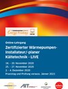 Themen des Online-Lehrganges sind u.a. Funktionsweise und Dimensionierung von Wärmepumpenheizungen, Log(p)-h-Diagramm, Akustikplanung, Auslegung und Errichtung von Wärmequellenanlagen, Umweltauswirkung und Umgang mit Kältemitteln, Installation und Wartung, Förderungen und Marktsituation.