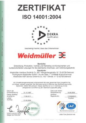 Mit seinem nach ISO 14 000 zertifiziertem Umweltmanagementsystem stellt sich Weidmüller aktiv den Herausforderungen zum Umwelt- und Gesundheitsschutz gegenüber seinen Mitarbeitern und Kunden. Als Hersteller elektrischer Komponenten arbeitet der globale Konzern stetig an Lösungen zur Beschränkung der Verwendung bestimmter gefährlicher Stoffe in seinen Produkten (RoHS) und an der Vermeidung des Abfalls von Elektro- und Elektronikgeräten bzw. am Recycling, der Wiederverwendung oder sonstigen Verwertung solcher Geräte.
