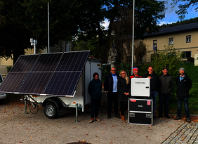 Der "PowerPackTrailer" für autarke LiDAR-Messungen in Empfang genommen. Die Beteiligten erhielten eine Einführung in dessen Funktionsweise und eine Schulung zum darin verbauten LiDAR-Gerät. Mit diesem Anhänger können autarke LiDAR-Messungen durchgeführt werden. Die Energieversorgung durch PV-Paneele und ein Kleinwindrad ermöglichen in Verbindung mit einer Brennstoffzelle und einem Batteriespeicher den Messbetrieb auch unter rauesten Bedingungen.
